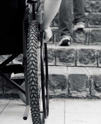 Digitale Barrierefreiheit baut Hürden ab, wie eine Rampe für Rollstuhlfahrer, die vor einer Treppe stehen. Sie ermöglicht Menschen mit Einschränkungen den gleichberechtigten Zugang zu digitalen Angeboten, ohne dass sie auf Hindernisse stoßen. So wie physische Barrieren überwunden werden müssen, schafft digitale Barrierefreiheit Chancengleichheit in der virtuellen Welt.