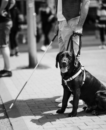 Digitale Barrierefreiheit wirkt wie ein Blindenhund oder ein Blindenstock, indem sie Menschen mit Behinderungen sicher und selbstständig durch digitale Angebote führt. Sie bietet Orientierung, Unterstützung und ermöglicht den barrierefreien Zugang zu wichtigen Informationen. So werden digitale Inhalte für alle nutzbar und verständlich gemacht.